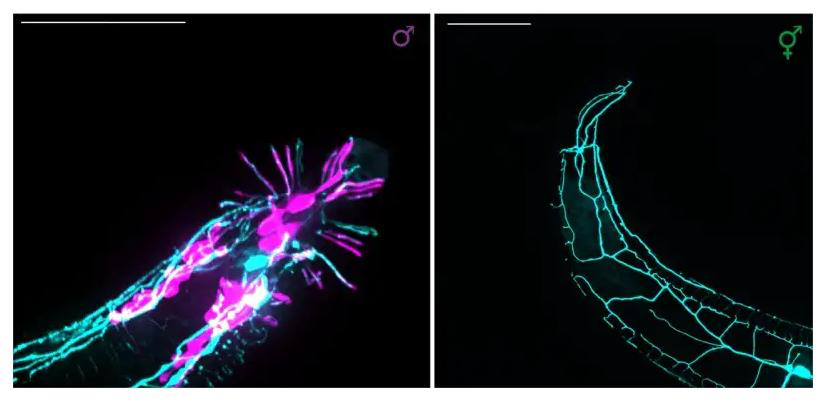 Araştırmacılar, daha önce hermafroditlerle karakterize edilen PVD adı verilen oldukça dallı bir nöronun erkeklerde farklı bir yapı oluşturduğunu keşfettiler. Dahası, hermafroditlerde PVD öncelikle ağrı algılamada işlev görürken, erkeklerde çiftleşme sırasında ek bir rolü vardır; gelişimi bozulduğunda erkekler daha yavaş ve daha az koordinelidir. Bu keşif, davranışsal farklılıklarla bağlantılı olan tek bir nöronun yapısında cinsel dimorfizmin benzersiz bir örneğini sunmaktadır.