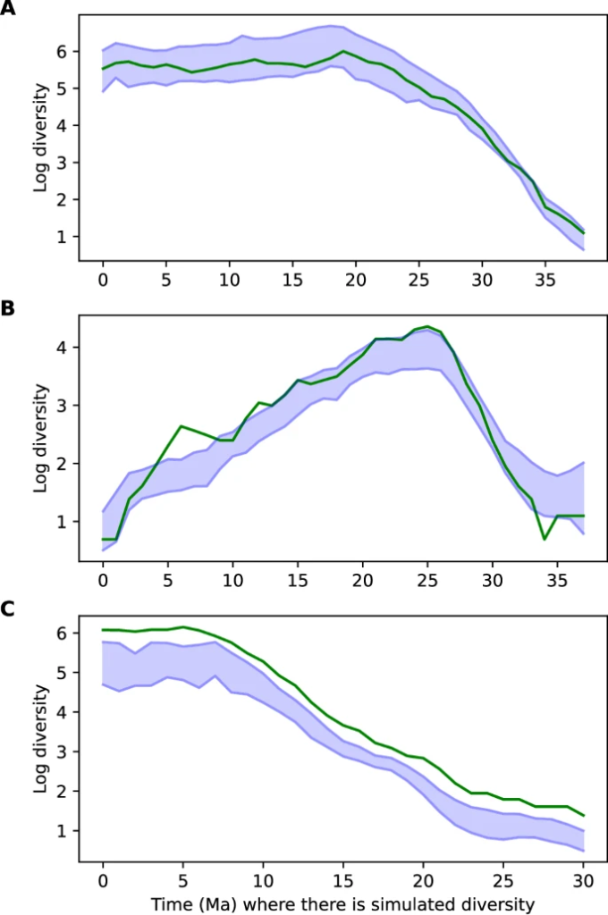 Yöntemimiz, özellikle büyük mekansal ölçeklerde, simüle edilmiş veri kümeleri arasında alternatif yaklaşımlardan daha iyi performans göstererek, çok çeşitli koruma senaryoları altında sağlam paleoçeşitlilik tahminleri sağlar. Yöntemimizi, farklı taksonomik ve zamansal kapsamdaki iki ampirik veri kümesine uyguluyoruz: deniz hayvanlarının Permiyen-Triyas kaydı ve hortumluların Senozoyik evrimi. Tahminlerimiz, deniz kayıtlarındaki iki kitlesel yok oluşun gözden geçirilmiş niceliksel değerlendirmesini sunuyor ve hortumluların Afrika’dan yayılmalarının ardından hızla çeşitlendiğini ve Pleistosen’de çeşitlilikte %70’ten fazla bir düşüş olduğunu ortaya koyuyor.