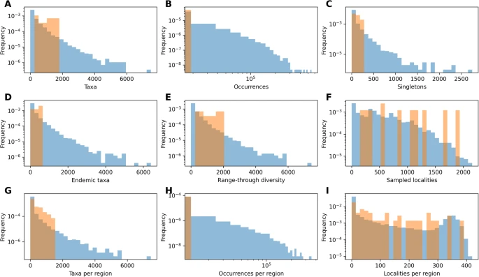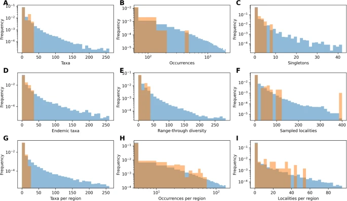 Zaman içinde biyolojik çeşitlilikteki değişimler, türlerin çeşitlenmesi ve yok oluşunun temel mekanizmalarını yansıtır; dinamiklerini tahmin etmek, yaşam tarihini anlamak için çok önemlidir. Fosil kayıtları, tahminlerin dayandırılacağı ampirik kanıtlar sunarak, yok olma, iyileşme, yayılma ve faunal ve floral dönüşüm süreçlerine ilişkin içgörüler sunarken, biyolojik çeşitlilik değişiminin itici güçlerinin yorumlandığı bağlamı belirler 1 , 2 , 3 , 4 , 5 . Evrimsel biyolojideki temel sorular, örneğin biyolojik çeşitliliğin küresel sınırlarının olup olmadığı 6 , 7 veya çevresel değişim, kitlesel yok oluşlar ve biyotik etkileşimler tarafından şekillendirilen biyolojik çeşitliliğin nasıl evrimleştiği 8 , 9 , 10 , 11 , 12 derin zamanda çeşitlilik kalıplarını çıkarsama yeteneğimize dayanır.