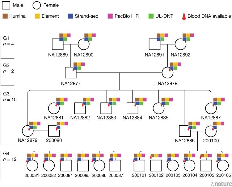 Çok kuşaklı insan aileleri incelenerek mutasyonların ortaya çıkma hızı tahmin edilebilir. Aynı ailenin dört neslinden 28 kişi için referans genomları bir araya getirilmiştir. Halka açık bu kaynak, genomun en karmaşık bölgelerindeki mutasyonların altında yatan mekanizmalar hakkında fikir verir.