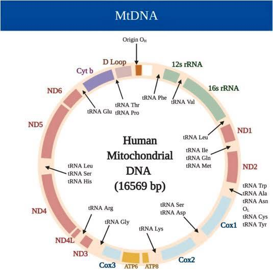 Mitokondriyal DNA (mtDNA), ökaryotik hücrelerde enerji metabolizmasını sağlayan mitokondrilerde bulunan, çekirdek genomundan bağımsız bir genetik materyaldir. Yaklaşık 16.500 baz çifti uzunluğunda olan bu dairesel DNA molekülü, insan genomunun yalnızca küçük bir kısmını oluştursa da, enerji üretiminde rol oynayan temel proteinlerin ve RNA moleküllerinin kodlanmasından sorumludur. mtDNA, yalnızca anne yoluyla kalıtıldığından, popülasyon genetiği, evrimsel biyoloji ve soy analizlerinde önemli bir moleküler belirteç olarak kullanılır. Ayrıca, yüksek mutasyon oranı nedeniyle bazı genetik hastalıkların tanısında ve izlenmesinde de anahtar rol oynar.