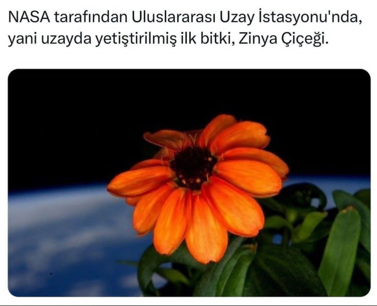 Zinya çiçeği, Uluslararası Uzay İstasyonu’nda yetiştirilen ilk çiçekli bitki olarak tarihe geçti. Bu deney, uzayda bitki yetiştirmenin mümkün olduğunu ve bu süreçte karşılaşılan zorlukların aşılabileceğini gösterdi. Zinya’nın başarısı, gelecekteki uzun süreli uzay görevleri için taze yiyecek yetiştirme olanaklarını araştırmaya devam eden bilimsel çabaların önemli bir parçası olarak kabul edilir.