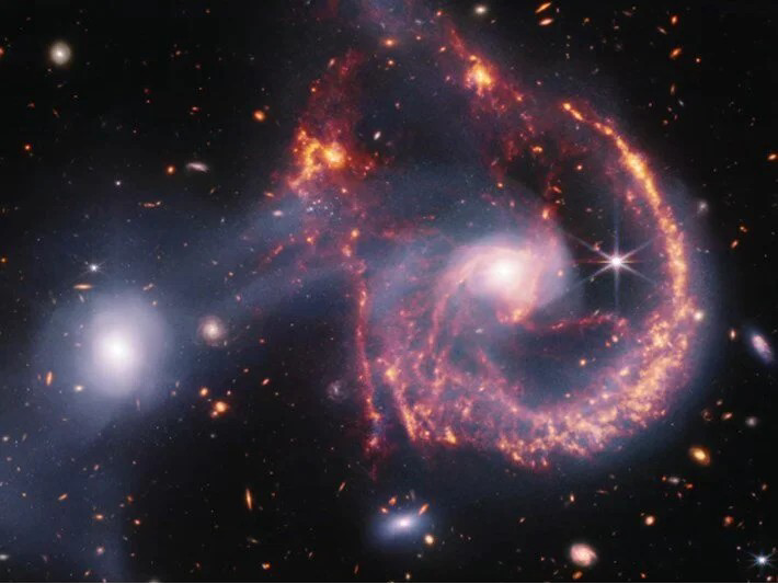 James Web Uzay Teleskobu şimdiye kadar görülmemiş nefes kesici bir anı görüntüledi. NASA öncülüğünde ve ESA ile CSA’nın desteğiyle geliştirilen uzay teleskobu yüz milyonlarca yıl süren devasa bir çarpışma sonucu iki galaksinin birleşmesini ortaya çıkardı.
